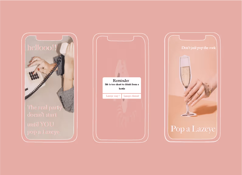 Lazeye is a canned champagne brand that aims to appeal to a younger demographic with its unique name and irreverent approach to the traditional luxury drink. The brand's unique name "Lazeye" is easy to pronounce and spell and evokes a sense of playfulness and enjoyment, aligning with the theme of a bubbly night out. The brand is packaged in cans, making it convenient and portable for consumers to enjoy in various settings. The cans come in bright and bold colors, making it stand out on the shelves.